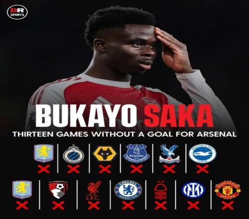 4 - 萨卡陷入进球荒,续约后状态与高薪引关注